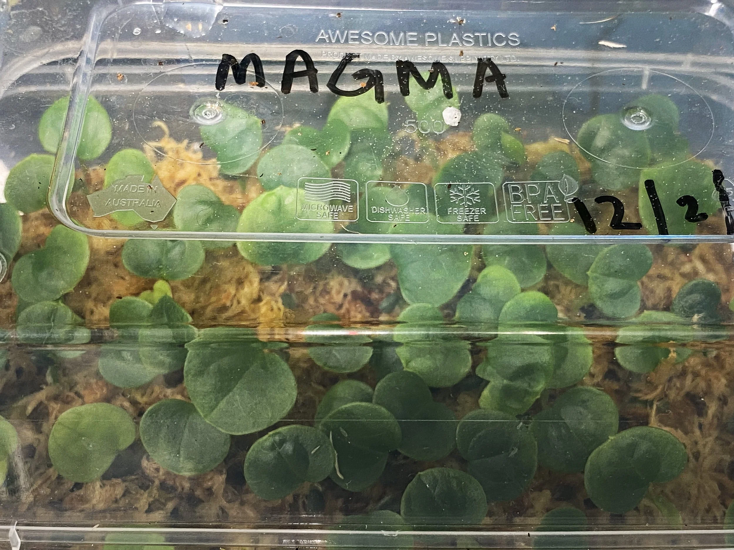 The tiny seedlings are then planted in small pots filled with a fine grade loose aroid mix, topped with some damp sphagnum moss